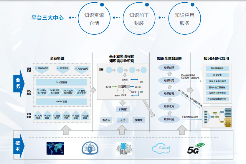 融合人工智能、大數(shù)據(jù)等新一代信息技術(shù),采用基于 AI 的自動(dòng)采集、自動(dòng)聚類、自動(dòng)歸類技術(shù),基 于大數(shù)據(jù)的用戶畫像技術(shù)、基于知識(shí)圖譜的表達(dá)關(guān)聯(lián)技術(shù)、基于特征向量的知識(shí)匹配技術(shù),在原知 識(shí)工程系統(tǒng)基礎(chǔ)上,重點(diǎn)增強(qiáng)多源異構(gòu)知識(shí)采集、智能知識(shí)檢索、場(chǎng)景化知識(shí)推送、智能問答等核 心組件與應(yīng)用功能,為客戶提供面向全業(yè)務(wù)域的知識(shí)需求識(shí)別與場(chǎng)景化應(yīng)用服務(wù),推動(dòng)知識(shí)工程系 統(tǒng)成為產(chǎn)品全生命周期的基礎(chǔ)性共性應(yīng)用。
